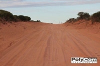 This busy tourist access road in Western Australia consists of Pindan sand-clay. With 150mm of loose material, the road surface is prone to blow outs.