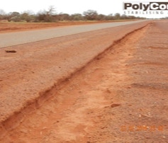 • Haul road shoulders using poor in-situ material made good with PolyCom Soil Stabiliser ©